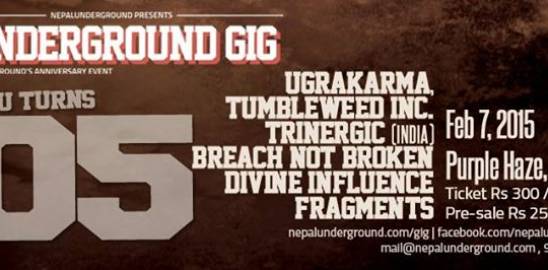 Since its inception in 2010, NepalUnderground has been covering the local music scene and promoting the bands. To celebrate our journey of half a decade, we will be putting an anniversary gig titled “The Underground GIG”. With live sound handled by Divesh Mulmi (cobweb), industry standard lights, effects, projector and best bands on the lineup, we will be delivering a memorable metal gig to all the music lovers.